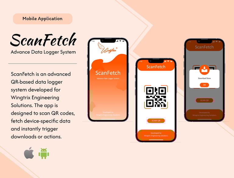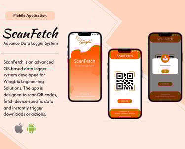 ScanFetch is an advanced QR-based data logger system developed for Wingtrix Engineering Solutions. The app is designed to scan QR codes, fetch device-specific data and instantly trigger downloads or actions.
