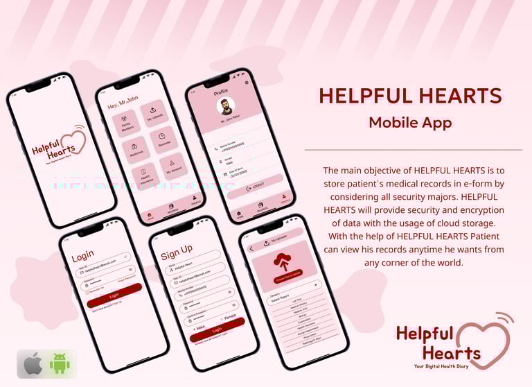 HELPFUL HEARTS is an health-focused mobile application developed to help users securely store, manage, and access their medical records digitally. The main objective of HELPFUL HEARTS is to store patient's medical records in e-form by considering all security majors. HELPFUL HEARTS will provide security and encryption of data with the usage of cloud storage.