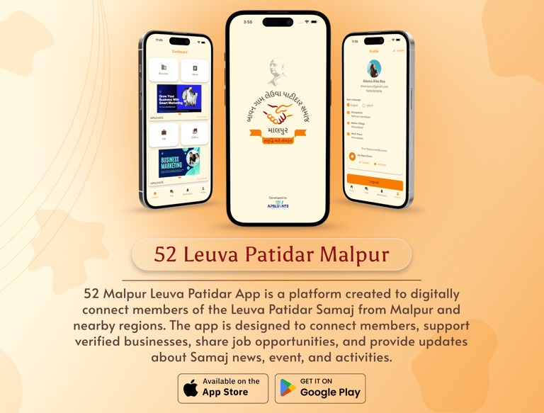 I developed a full-featured 52 Leuva Patidar Samaj community mobile app using Android & iOS. The app is designed to connect Samaj members, streamline communication, and provide easy access to community services.